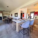 The kitchen amenities at the accommodation feature an electric kettle, a refrigerator, and a stove top, provided in an outdoor dining area. High View Villa can be reached by car in 31 minutes from Rhodes International, "Diagoras" airport. Guests are welcome to enjoy a private swimming pool and a private garden.